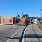 Carreta tomba e interdita parcialmente o Trevo das Bandeiras em Macaé