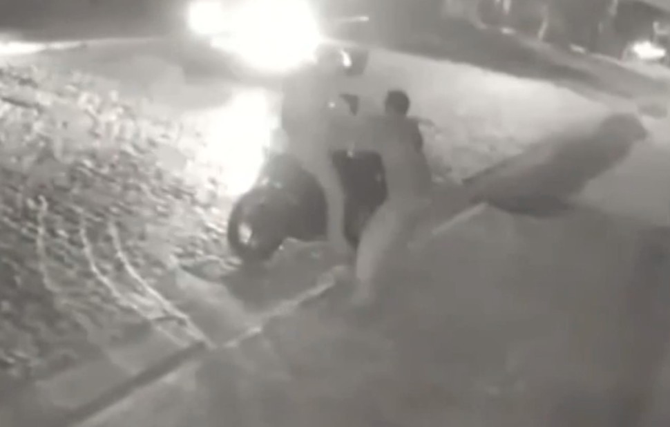 O encontro, que terminou em duelo, foi registrada por uma câmera de segurança. Imagens fortes…