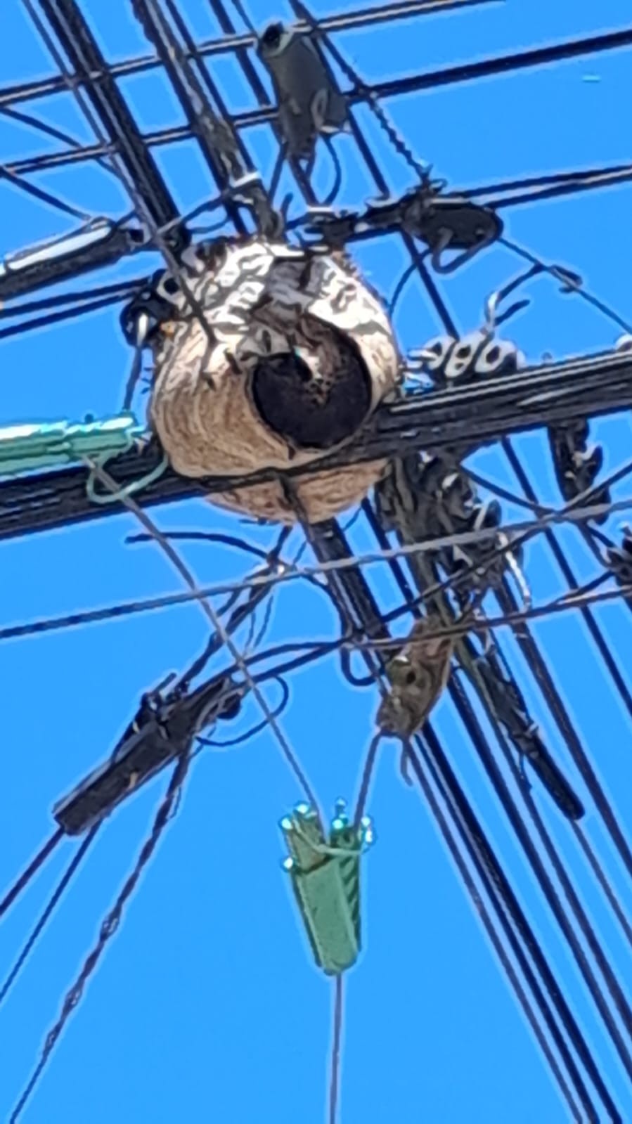 Ninho de marimbondos em fio de alta tensão preocupa moradores em Itaperuna