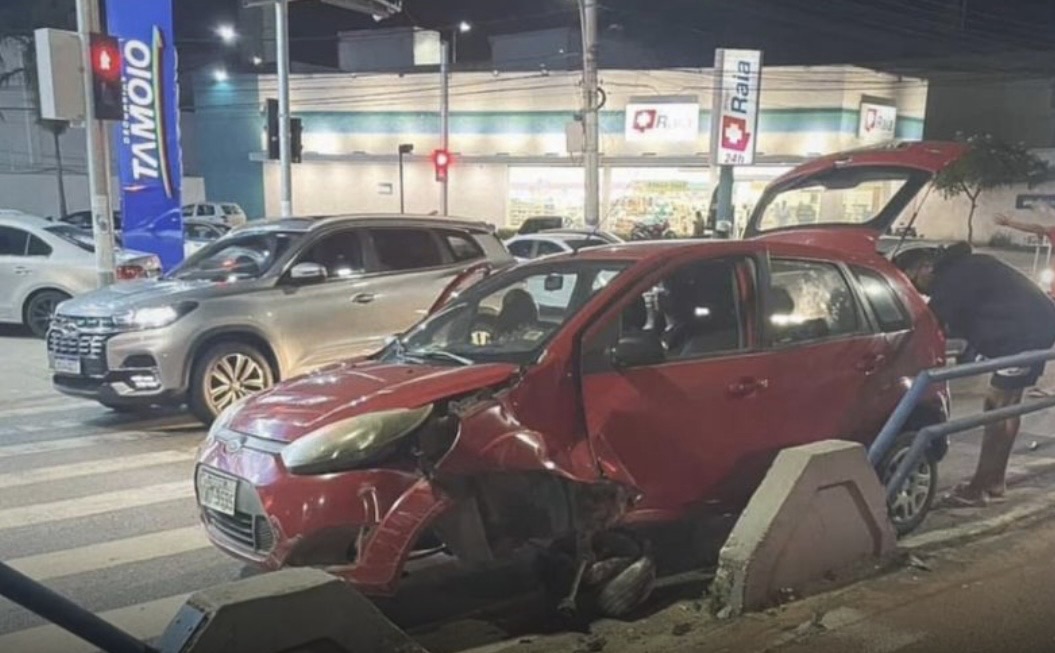 Carro tem frente destruída ao colidir em ciclovia da Avenida 28 de Março