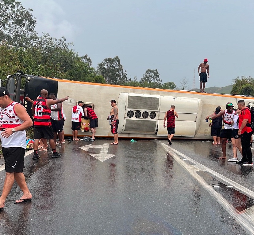 Urgente: Ônibus com torcedores do Flamengo capota no Rio de Janeiro
