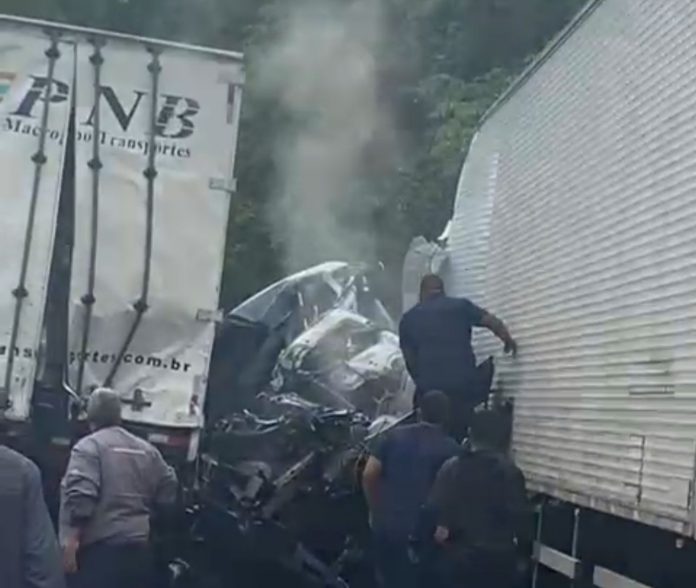 Acidente entre carretas e carro deixa três feridos na BR-101