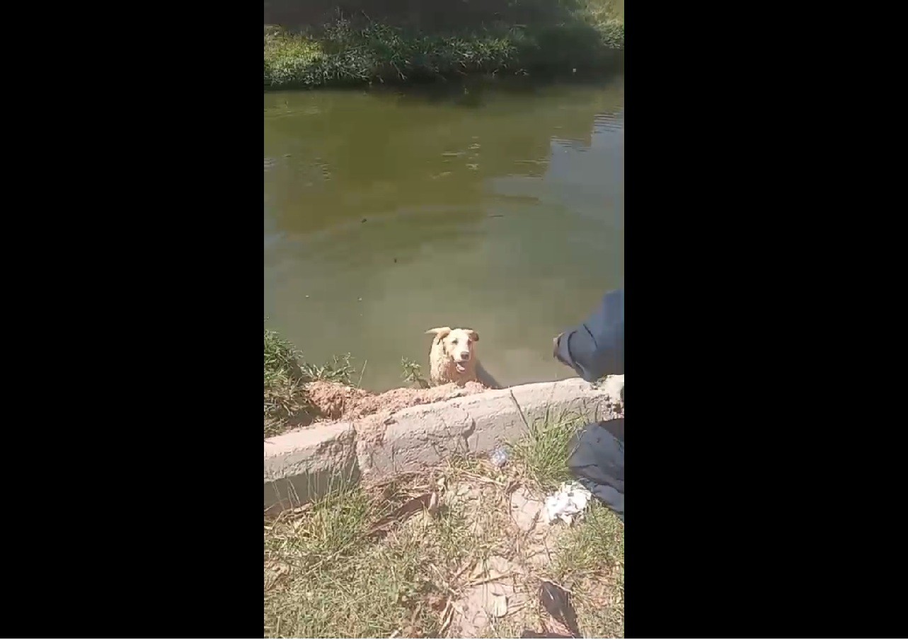 Agentes da Guarda Civil resgatam cachorro no rio em Iguaba Grande
