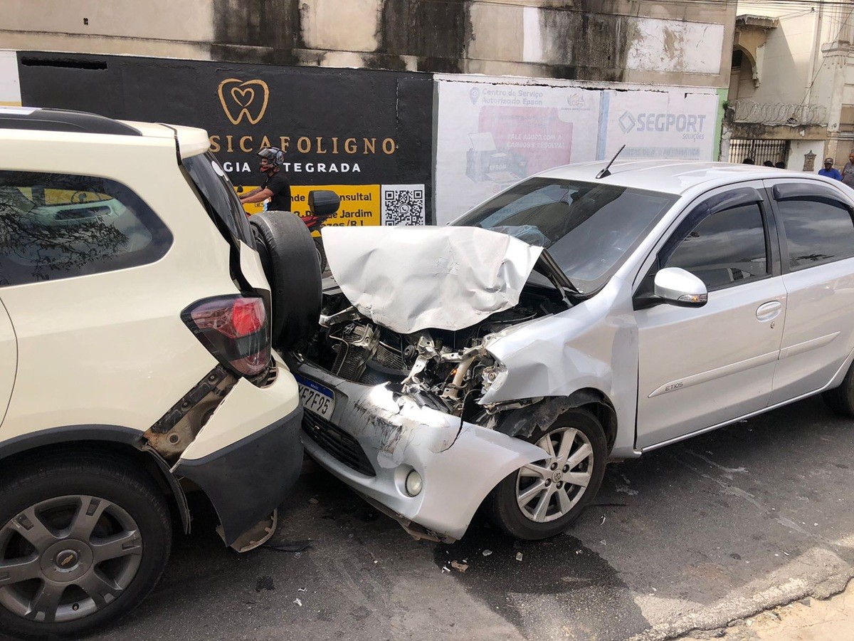 Engavetamento envolvendo três carros provocou lentidão na manhã deste sábado (4) Uma motorista sob suspeita…