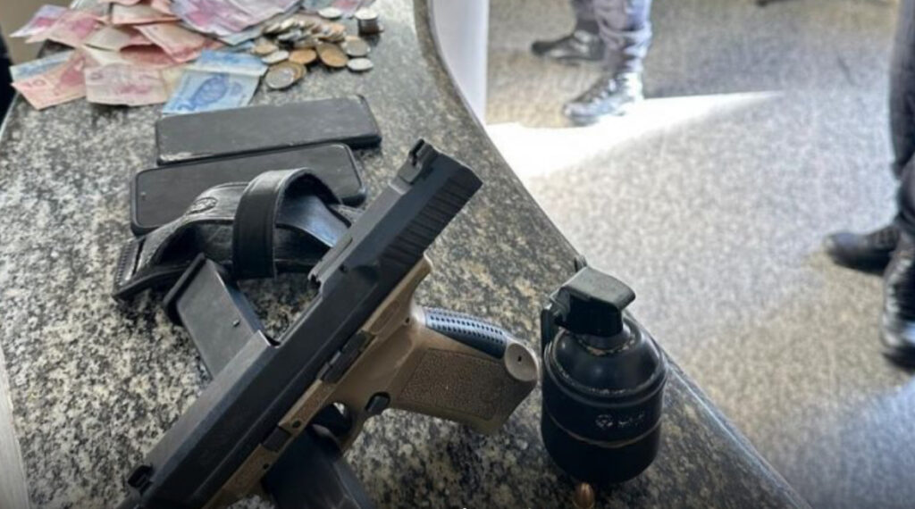 De acordo com o setor de comunicação da PM, os policiais civis e militares realizaram diligências nas localidades do Rio da Areia e Jaconé, quando na Rua 100, em uma residência, usada por traficantes no distrito de Jaconé, o seguinte material: uma pistola 9mm, um carregador alongado 9mm, três munições intactas e uma granada.
